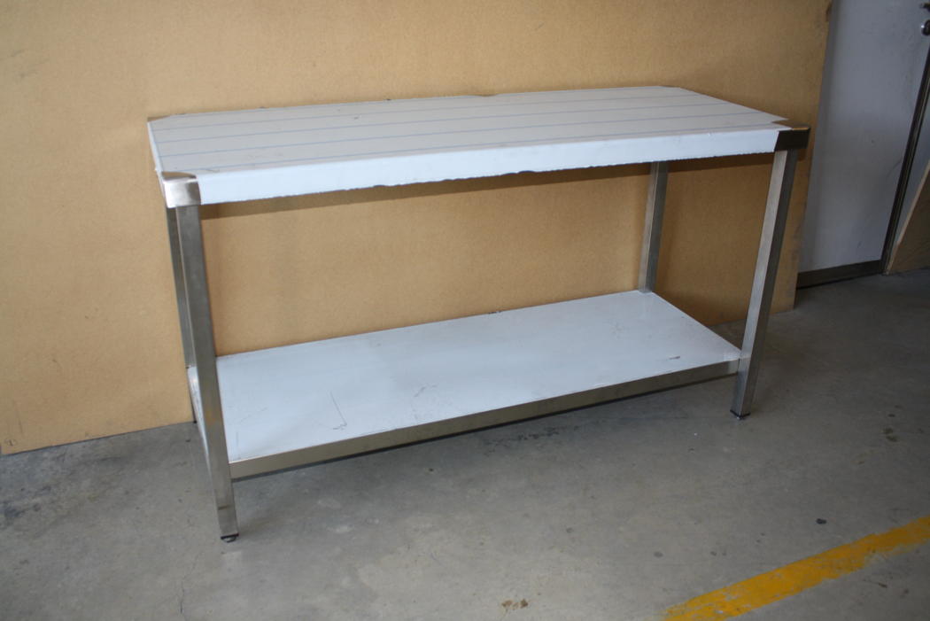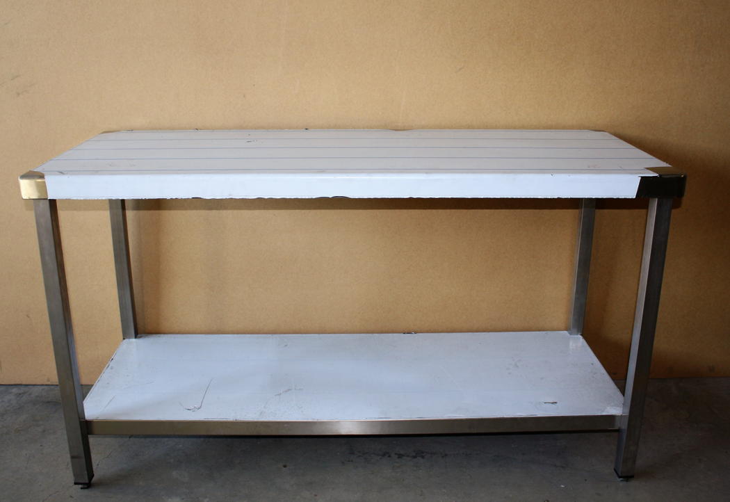 Mesa central en acero inoxidable con estante inferior (posibilidad de cajón en un lado).