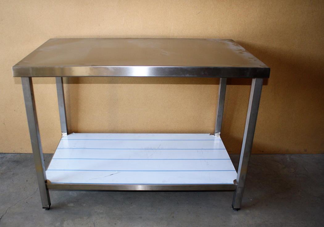 Mesa central en acero inoxidable con estante inferior (posibilidad de cajón en un lado).