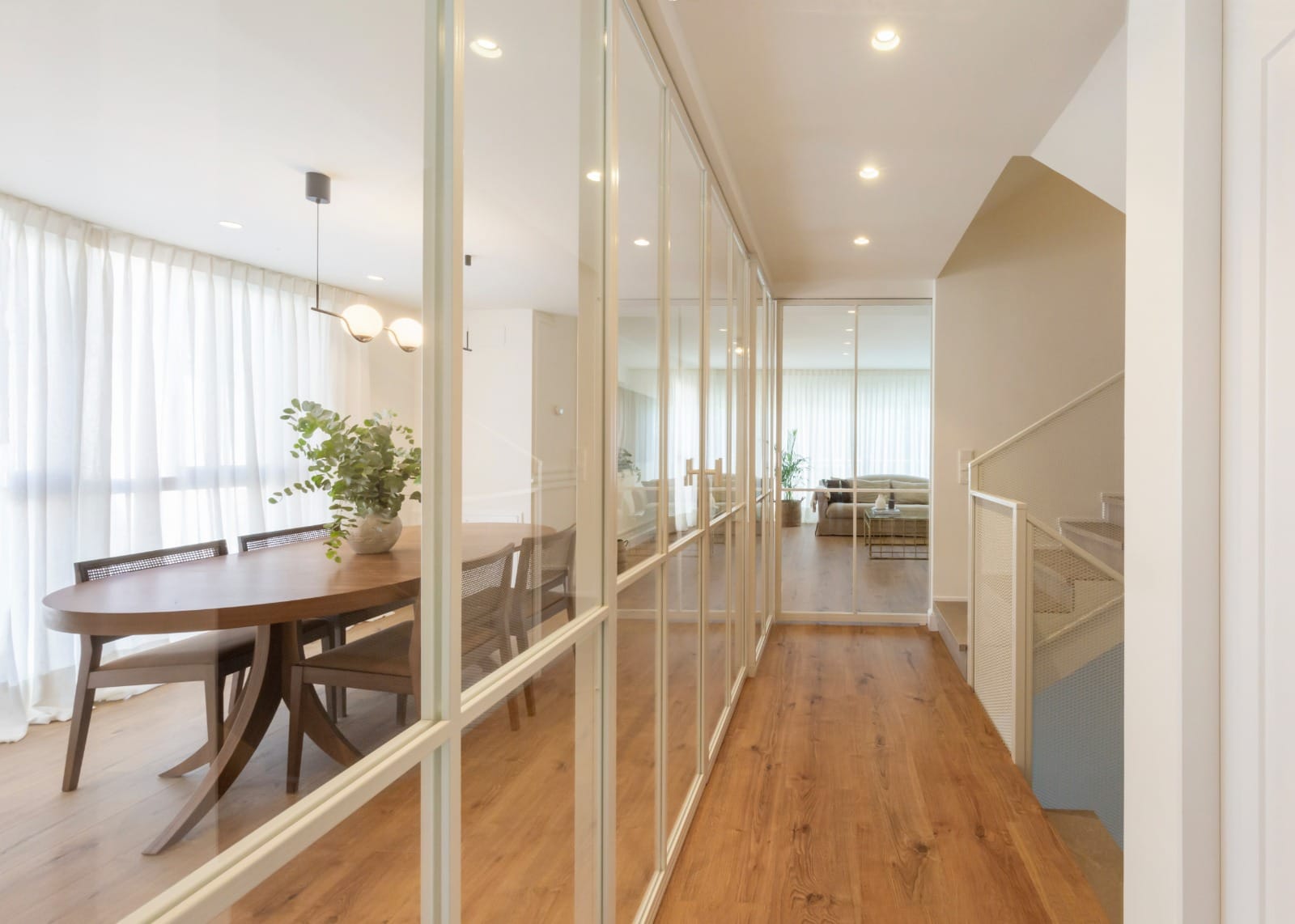En Arper Inox fabricamos, para este caso, separadores de estilo industrial con cristales traslucidos que permiten el paso de la luz sin que se pueda ver lo que hay al otro lado, proporcionando así la privacidad que faltaba. Si necesitas un separador entre recibidor y salón, puedes pedir presupuesto sin compromiso.